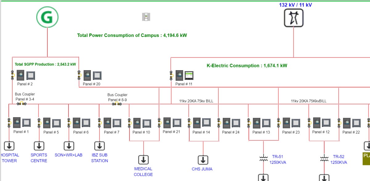 π Breaker Status: Clear indicators of breaker positions (open/closed) help operators quickly assess system configuration and safety status.